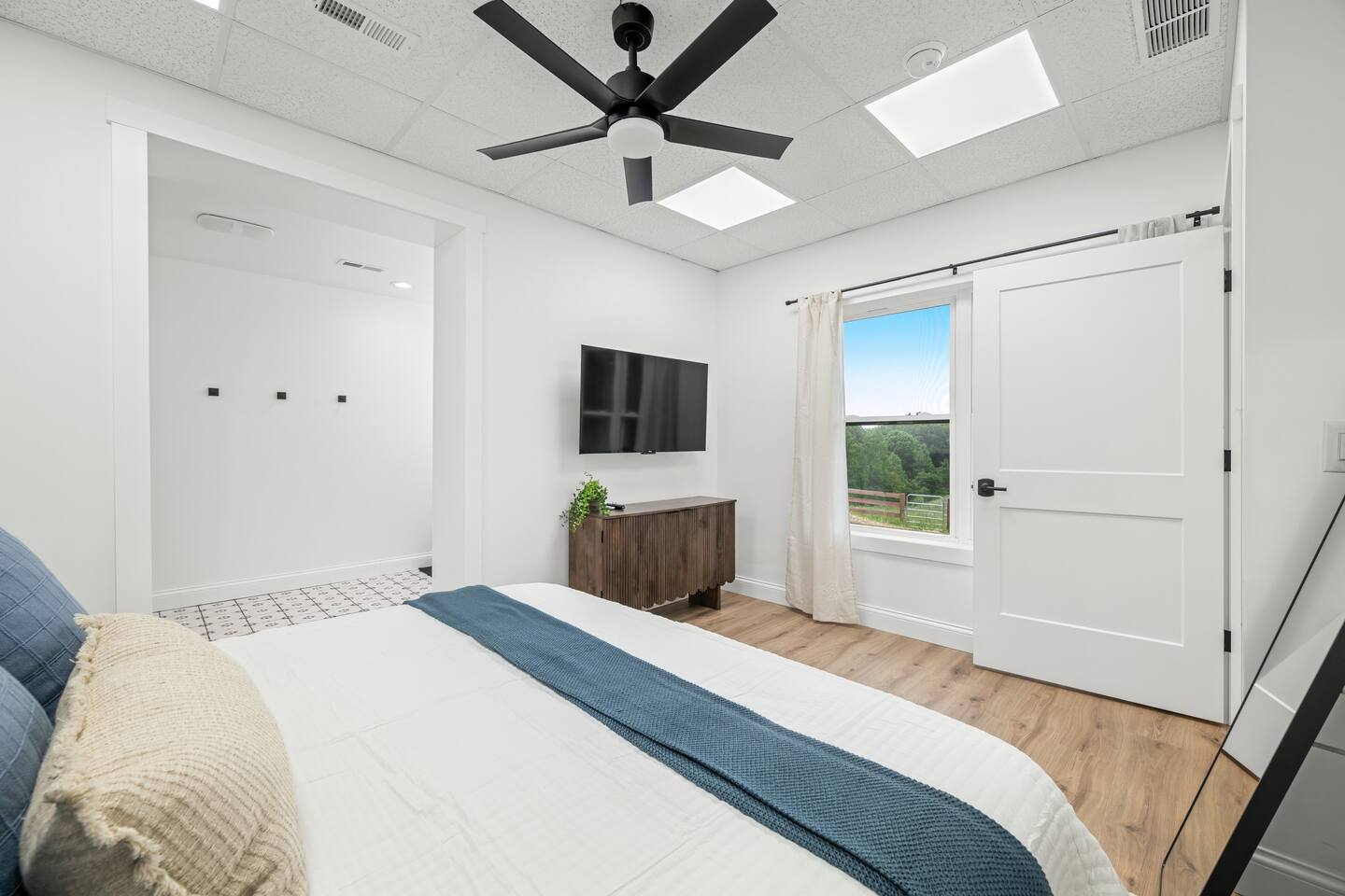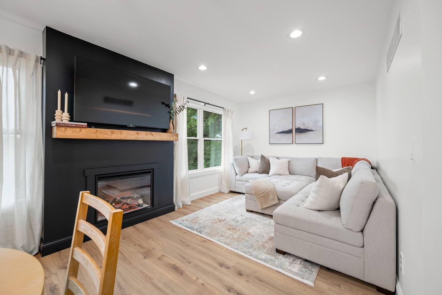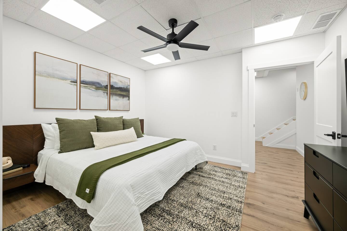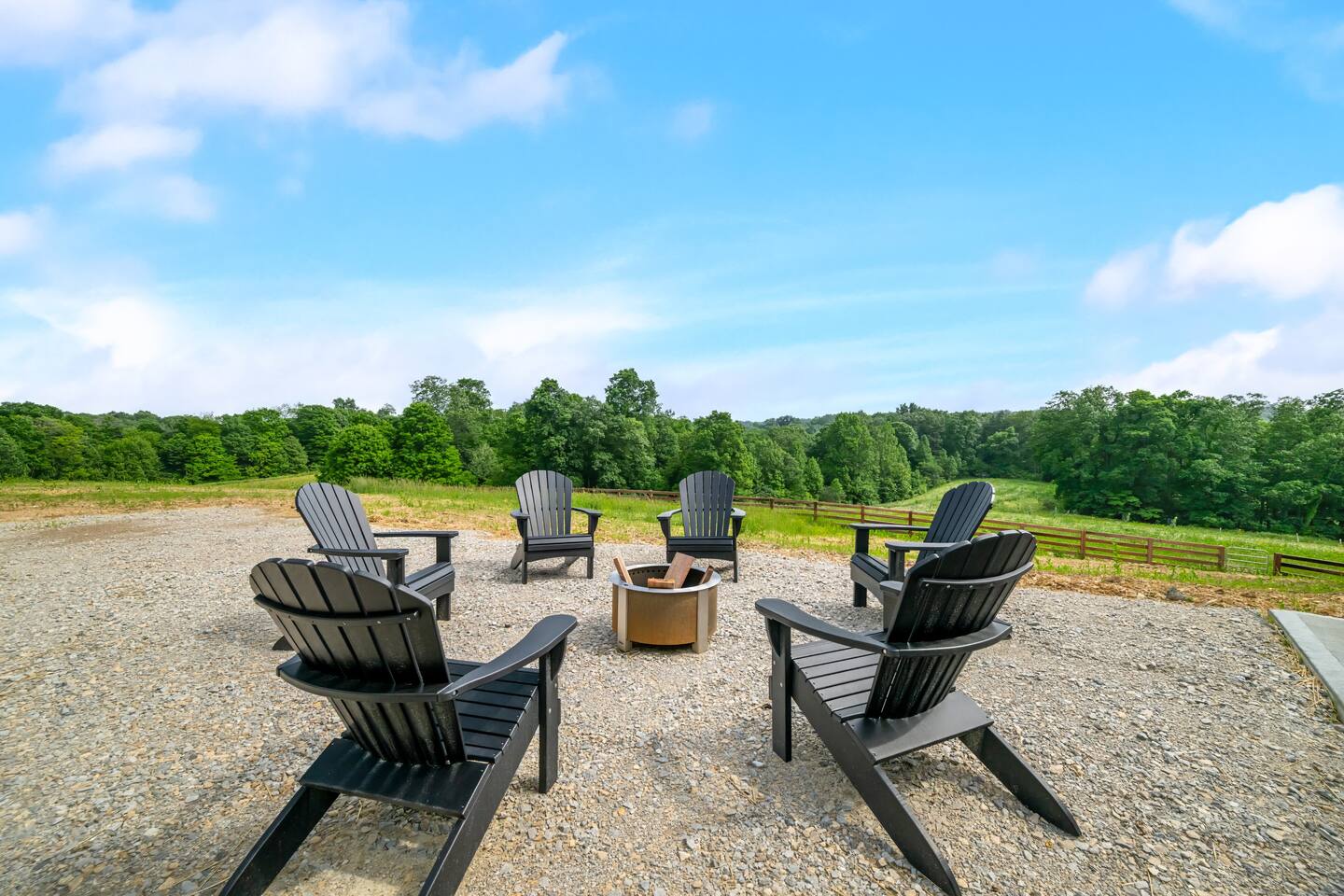 Inside, you’ll find a cozy living room with a fire place, large windows showcasing stunning countryside views, and a fully equipped kitchen with high-end appliances. Each bedroom offers a private sanctuary, with plush beds, cozy linens, and ensuite or nearby bathroom. Step outside to explore with a walk down the long driveway, wildlife watching, or simply soaking in the natural beauty. Enjoy your morning coffee on the covered porch, gather around the fire pit under the stars, or host a cookout using the outdoor grill. HOME LAYOUT: Main Floor: -Kitchen -Dining area -Coffee bar -Living room with 55" Smart Tv -Bedroom #1 with Queen bed -Full Bathroom -Laundry room Basement: -Bedroom #2 with King bed -Full Bathroom #2 -Bedroom #3 with King bed -Full Bathroom #3 -Kids play area -Lounge area with infinity game table