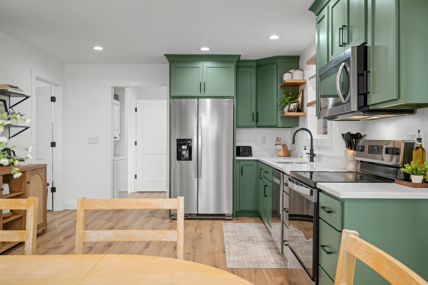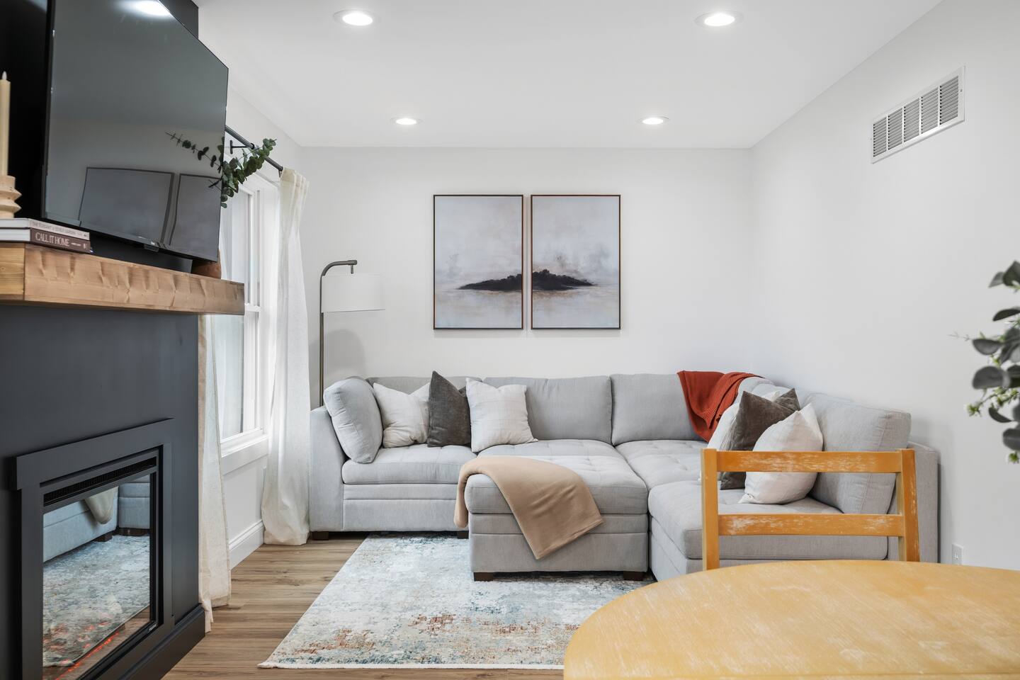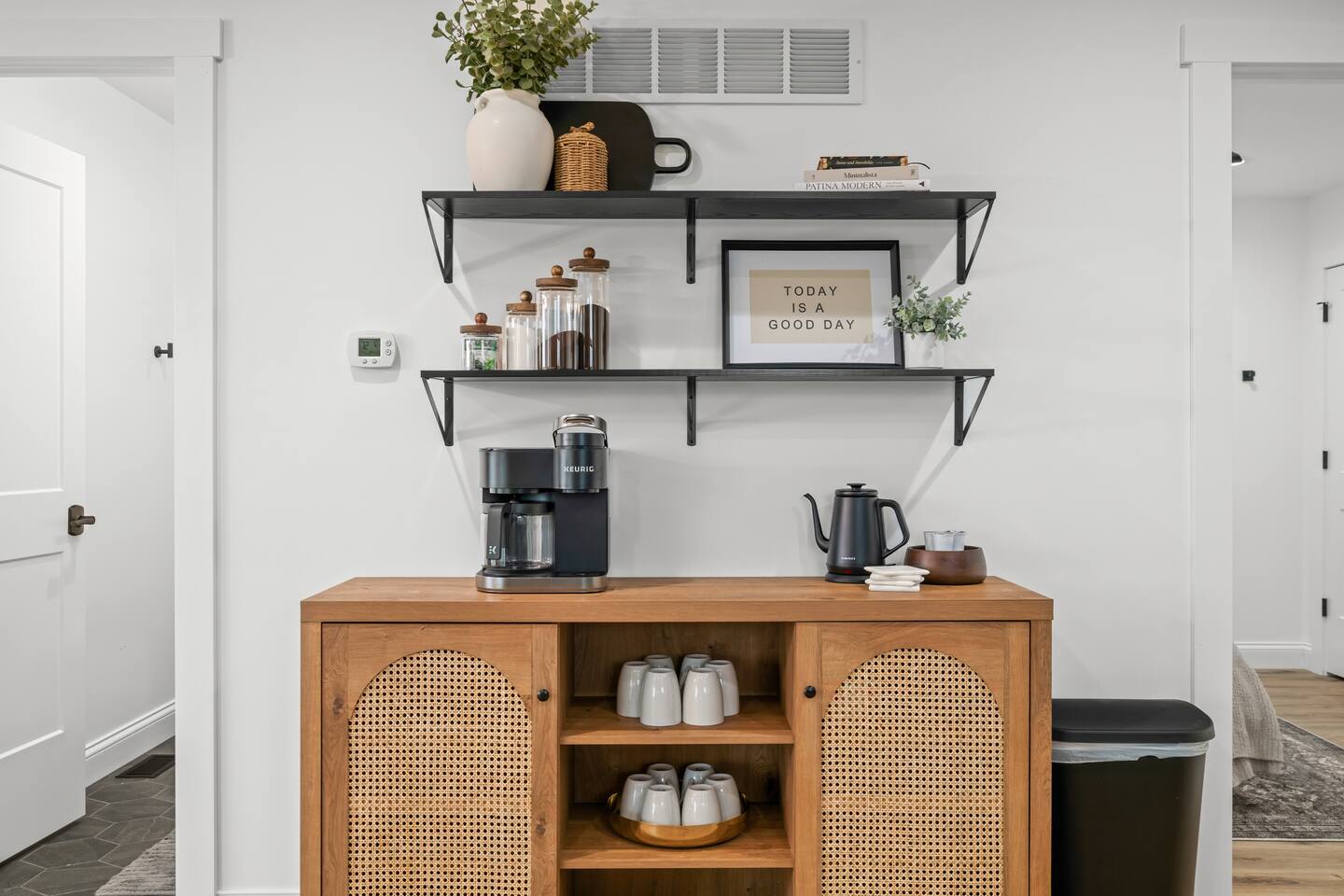 Inside, you’ll find a cozy living room with a fire place, large windows showcasing stunning countryside views, and a fully equipped kitchen with high-end appliances. Each bedroom offers a private sanctuary, with plush beds, cozy linens, and ensuite or nearby bathroom. Step outside to explore with a walk down the long driveway, wildlife watching, or simply soaking in the natural beauty. Enjoy your morning coffee on the covered porch, gather around the fire pit under the stars, or host a cookout using the outdoor grill. HOME LAYOUT: Main Floor: -Kitchen -Dining area -Coffee bar -Living room with 55" Smart Tv -Bedroom #1 with Queen bed -Full Bathroom -Laundry room Basement: -Bedroom #2 with King bed -Full Bathroom #2 -Bedroom #3 with King bed -Full Bathroom #3 -Kids play area -Lounge area with infinity game table