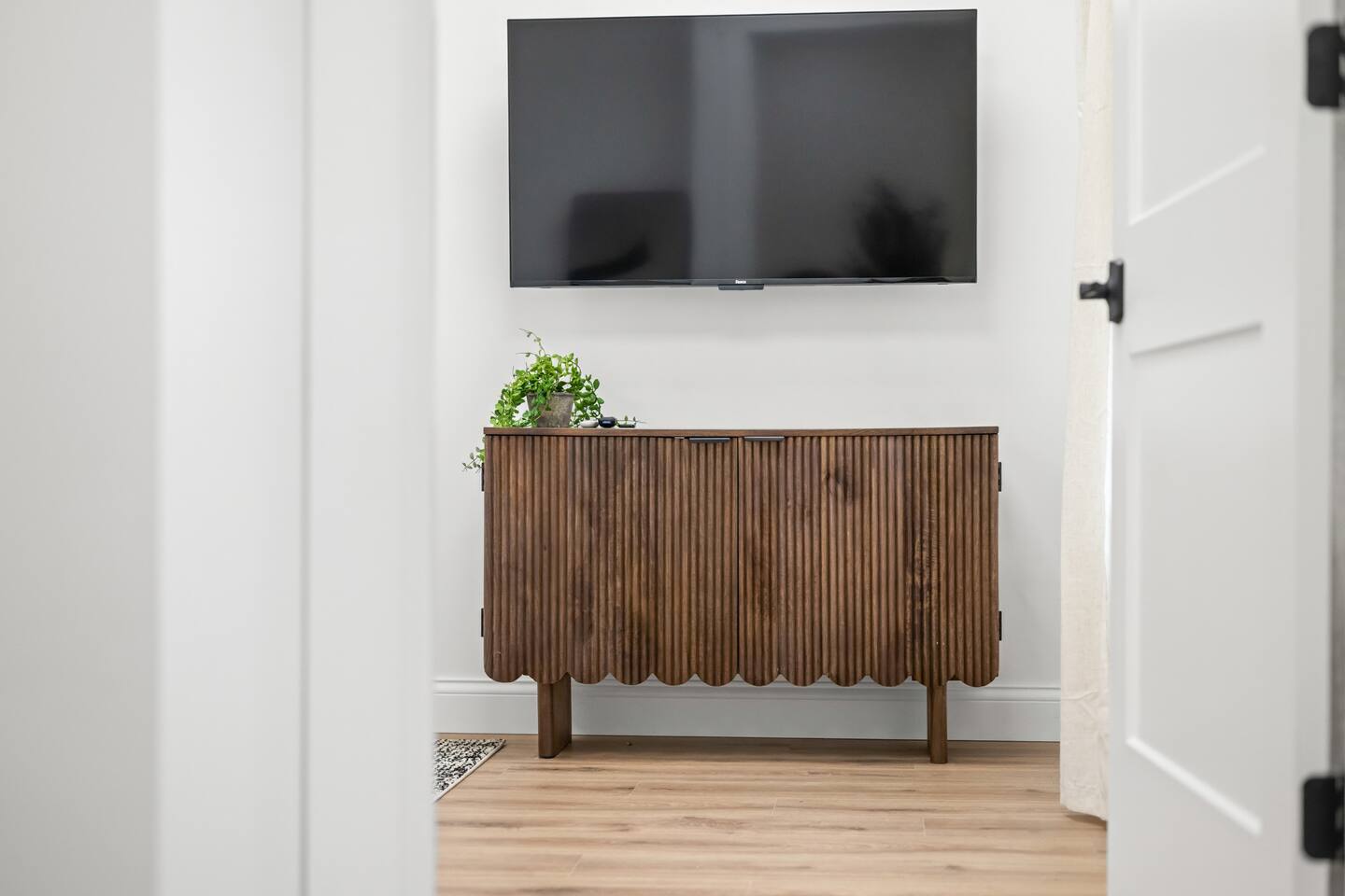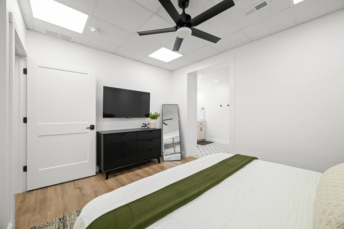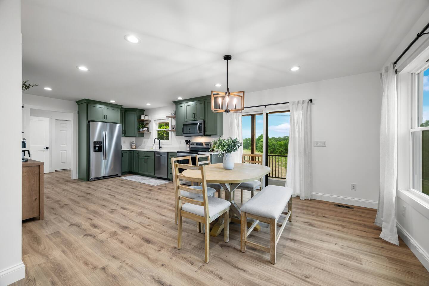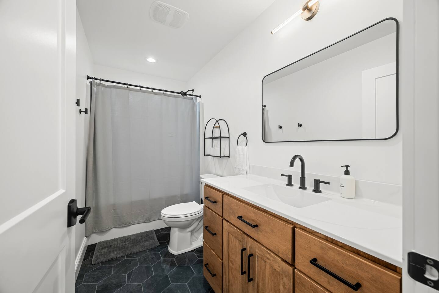 Inside, you’ll find a cozy living room with a fire place, large windows showcasing stunning countryside views, and a fully equipped kitchen with high-end appliances. Each bedroom offers a private sanctuary, with plush beds, cozy linens, and ensuite or nearby bathroom. Step outside to explore with a walk down the long driveway, wildlife watching, or simply soaking in the natural beauty. Enjoy your morning coffee on the covered porch, gather around the fire pit under the stars, or host a cookout using the outdoor grill. HOME LAYOUT: Main Floor: -Kitchen -Dining area -Coffee bar -Living room with 55" Smart Tv -Bedroom #1 with Queen bed -Full Bathroom -Laundry room Basement: -Bedroom #2 with King bed -Full Bathroom #2 -Bedroom #3 with King bed -Full Bathroom #3 -Kids play area -Lounge area with infinity game table