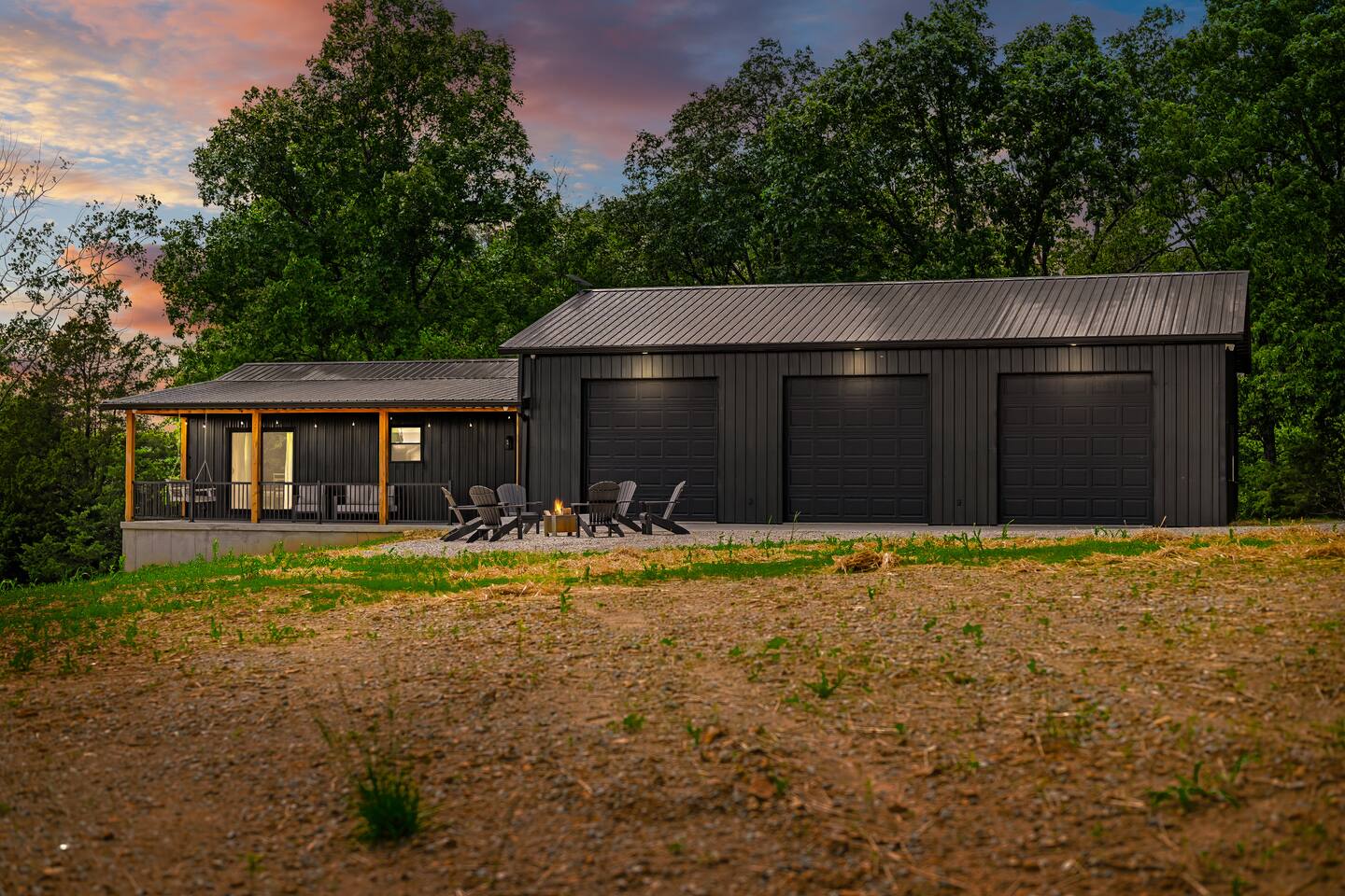 HIGHLIGHTS: Cozy Indoor Fireplace Fire pit and outdoor seating/porch swing Fully stocked kitchen High-speed Wi-Fi and smart TVs Infinity game table Washer and Dryer 3 Full bathrooms Escape to serenity at this barndominium nestled in rolling hills, woods, and open fields in the heart of southern Indiana. This modern retreat offers the perfect getaway for families, couples, or small groups seeking privacy and adventure.