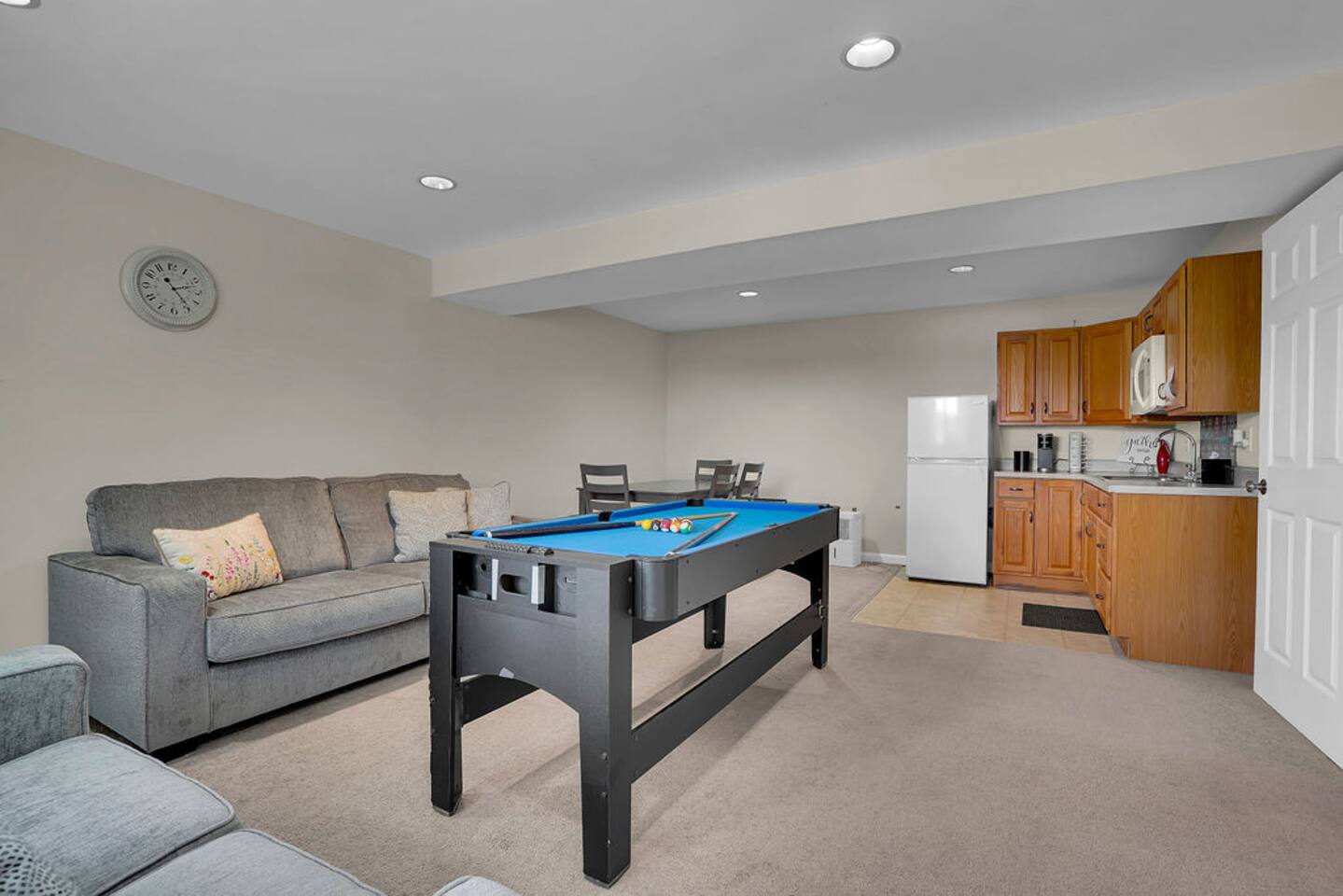 We strive to have our home clean and welcoming for each guest - I have no doubt our home will have the perfect touch to make your stay a memorable one. HOME LAYOUT: When walking through the front door you can either go up 6 steps to the main floor or go down 7 steps to the basement. Main Floor: (up 6 steps) -Kitchen -Dining room -Living room #1 -Sliding doors to go out to the deck -Bedroom #1 -Bedroom #2 -Bedroom #3 -Main Full Bathroom #1 Basement: (down 7 steps) -Living room #2 -Kitchenette -Pool table -Bathroom #2 with washer and dryer