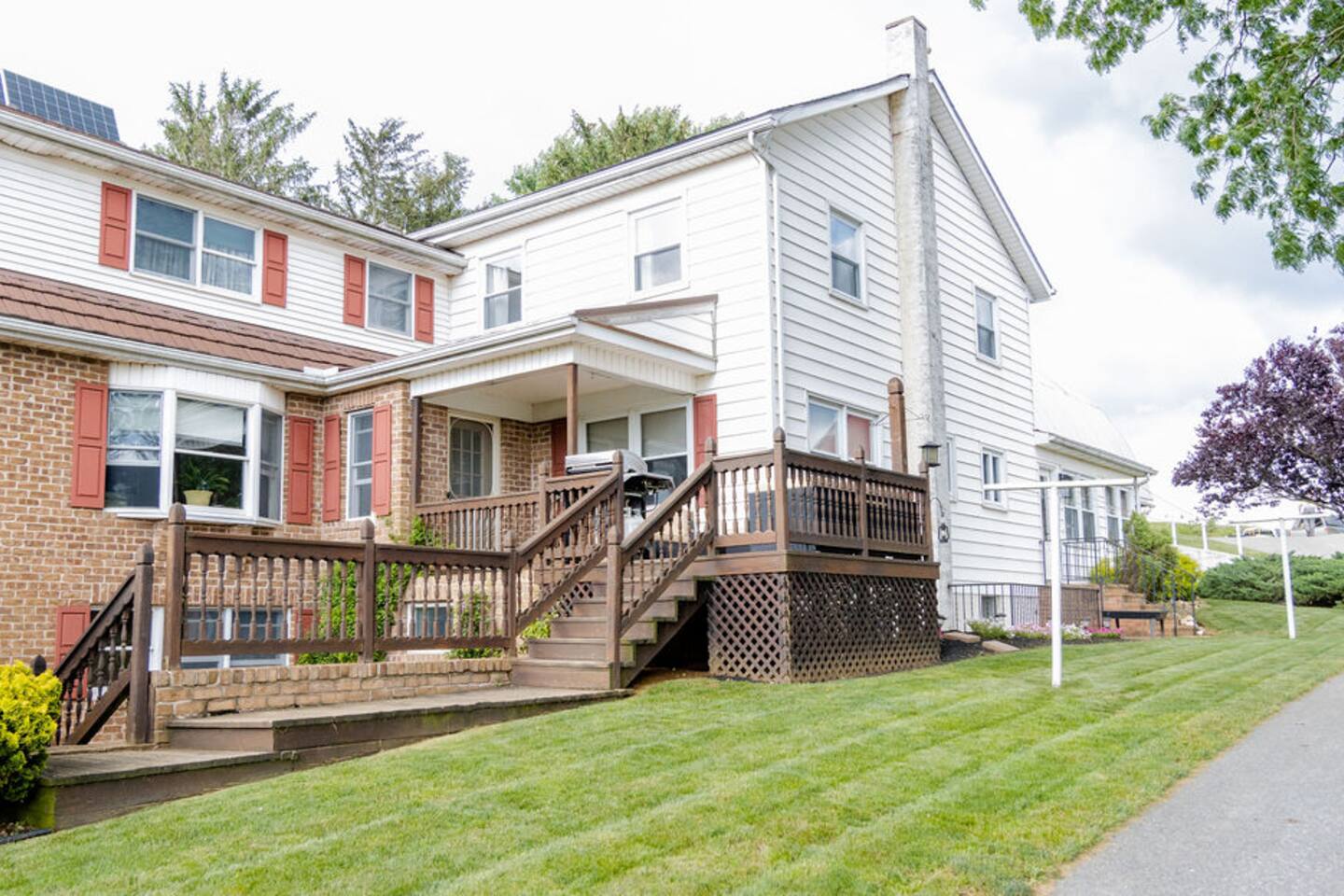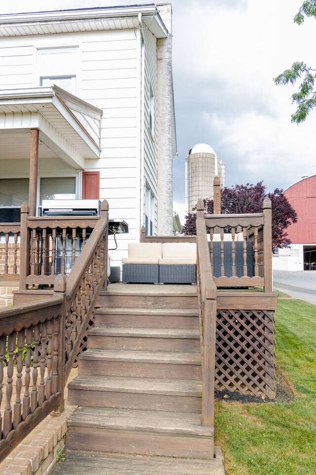 We have a Pond where you can feed ducks & relax in the Gazebo. This is also a great relaxing spot to sip on coffee while watching the beautiful sunrises in the peace and quiet of Lancaster county. OR to sit & unwind at the end of the day watching the sunset and enjoy the calming feeling the property provides from the fields and farmlands that we are surrounded by. You will be greeted by 2 sweet Labrador Retrievers when you arrive. They are used to people being in and out of the farm and are very friendly! Our home is only equipped for 16 guests. If you have a few more than that reach out and will see if we can arrange something for you. MAIN FLOOR: -Kitchen (fully stocked w/ all the essentials you need to stay in and cook for your family) -Dining Room (Desk for work space) -Living Room -Master Bedroom (#1) w/ attached Full Bathroom (#1) -Full Bathroom #2 SECOND FLOOR: -Bedrooms #2, #3, #4, #5 -Full Bathroom #3 This home was built by an Amish family in 1969 and has been in the Stoltzfus family for over 4 generations. (Read more about the history of this home during your visit.) The Stoltzfus's are now retired and live in a smaller home that is attached to this home. They are the sweetest Amish couple. You will not be sharing anything with them. You have your own entrance, privacy, and space. They keep to themselves but are super friendly so if you see them outside don't hesitate to say Hi. :-) The Amish couple have been hosting guests for years on this farm, so they are used to having guest on the property.